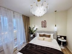 Роскошная спальня с выходом на большой балкон - с утепленным полом и качественной отделкой, креслом-коконом.
