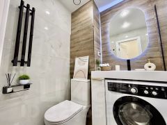 Гостиная - для комфортного отдыха. Современный санузел с качественной сантехникой, счетчиками, стиральной машиной и ванной. предусмотрена система от протечек.