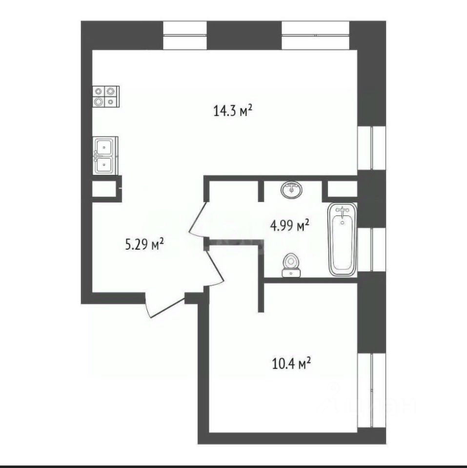Апартаменты в черновой отделке. Простор для фантазий. 5 окон! Будет много дневного света.