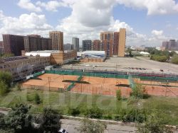 - вид на зеленый двор (юг) и на теннисные корты Измайлово (запад). Видна Останкинская телебашня.