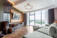 Идеальная семейная планировка: просторная кухня-гостиная, мастер-спальня с гардеробной и ванной комнатой, детская комната, гостевая комната, гостевой санузел, большая прачечная, прихожая. Отделка выполнена в современной классике в мягкой приглушенной палитре - квартира невероятно атмосферная и уютная! На полу - паркетная доска от Tarkett, в санузлах - подгорев полов. Предусмотрены функциональные системы хранения в каждой комнате. Панорамные окна великолепно инсолируют жилое пространство.