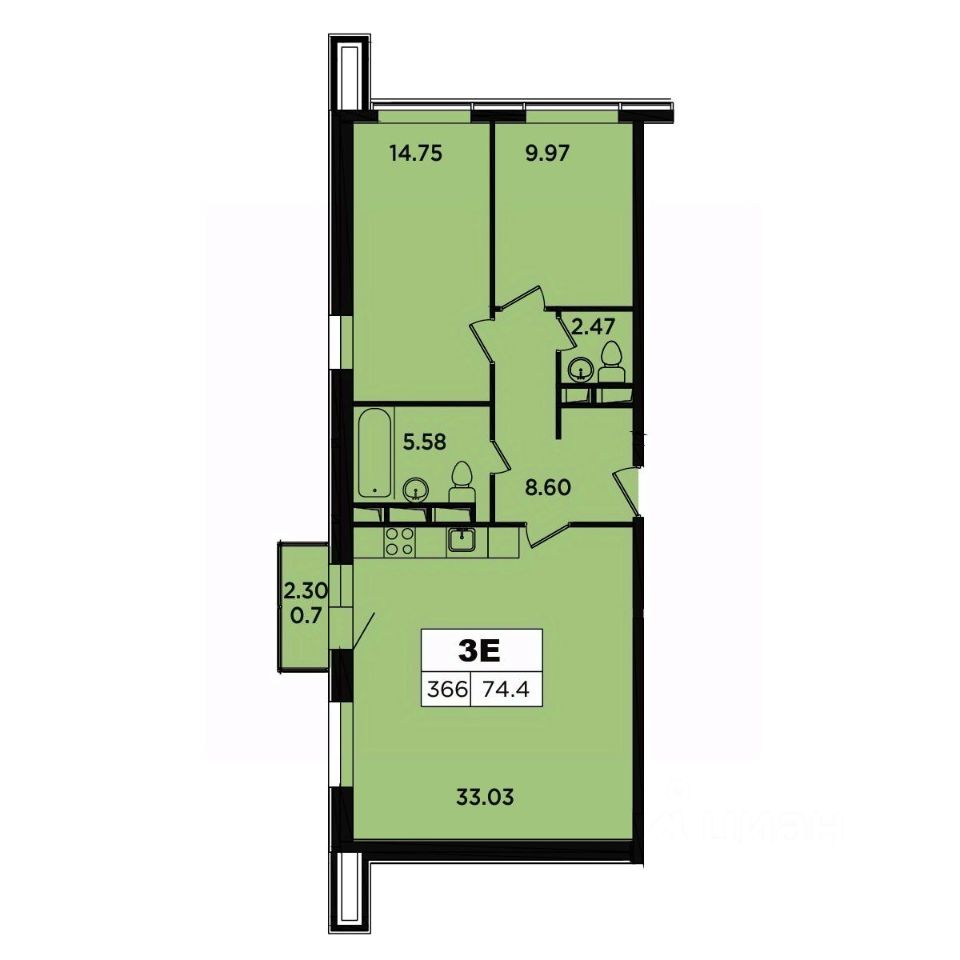 балкон 2,30 м2.