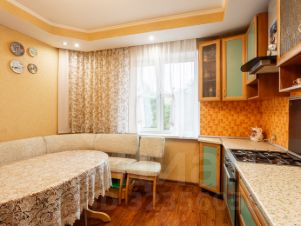 Экологически чистый район. 3-ком. квартира. В квартире сделан евроремонт. В квартире сделан евроремонт. В каждой комнате кондиционер. Застекленный балкон. На полу — ламинат. С/у раздельный. Встроенная кухня с бытовой техникой. Окна смотрят на две стороны.