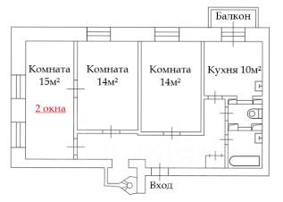 КВАРТИРА. Просторные изолированные комнаты 15 (два окна!)+14+14м² и коридор.