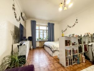 Квартира с косметическим ремонтом, в комнатах чисто и светло. Просторная жилая площадь составляет 42 кв. м, а кухня — 8 кв. м.Окна выходят на улицу, поэтому в квартире много естественного света.