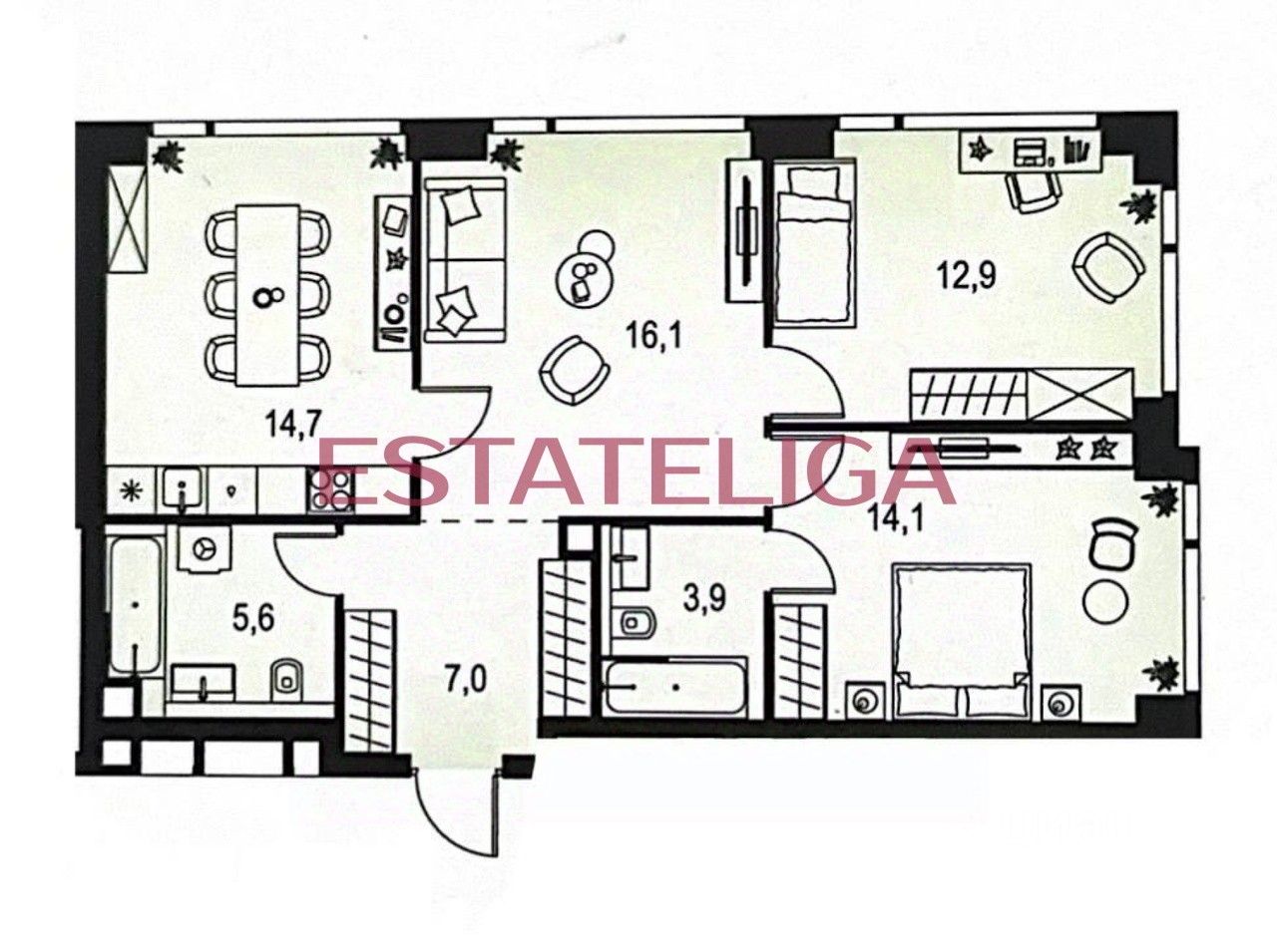Id 57952. Продается ВИДОВАЯ трехкомнатная квартира 77.3 м2 свободной планировки в ЖК Бизнес класса "Level Мичуринский"!