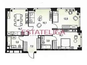 Свободная планировка, включает в себя: кухню и гостиную, которую можно совместить и получится большая зона отдыха для всей семьи. 2 изолированных комнаты, одну из которых можно сделать мастер, 1 гостевой санузел при входе в квартиру.
