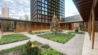 70% территории отведены под зеленые насаждения и ландшафтный дизайн - Приватный Японский сад - Детские площадки с зонированием по возрасту - Clubhouse для резидентов - Wellness & SPA - Зона для пикника, зона с гамаками - Центральное лобби, ресторан, коммерческие помещения - Дополнительный вход/выход на территорию комплекса Окружение - В 10 минутах от Symphony 34 находится дизайн-завод Flacon, где регулярно проходят культурно-образовательные и развлекательные мероприятия - Тимирязевский парк расположен в 850 м. Площадь парка 232 га - Рядом расположен парк "Дубки", площадью 16,5 га. - В 15 минутах расположен Хлебозавод 9. Здесь находятся шоурумы брендов, кафе разных кухонь мира, образовательные проекты и площадки для мероприятий