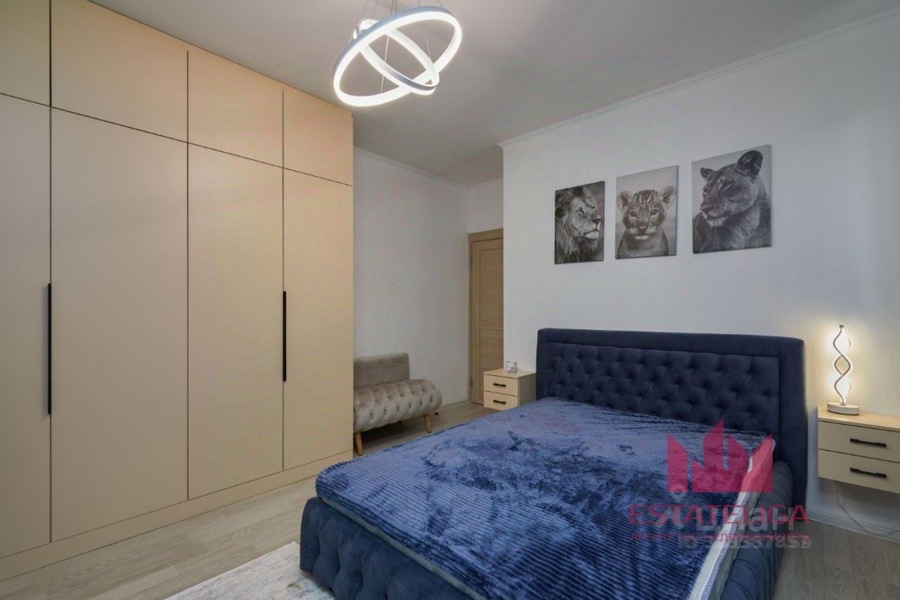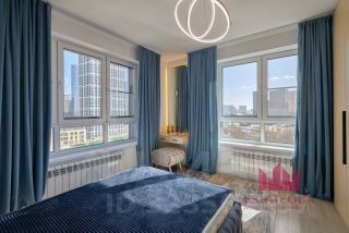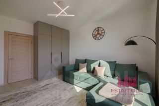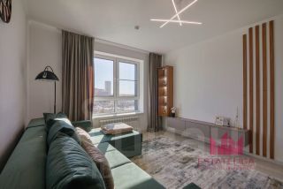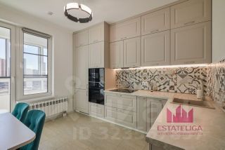 Кухонный гарнитур со всей необходимой встроенной техникой: посудомоечная машина, духовой шкаф, варочная панель, вытяжка, вместительный холодильник. В комнатах установлены кровати, шкаф. Санузел с качественной сантехникой, электрическим полотенцесушителем и стиральной машиной; ванна с тропическим душем.