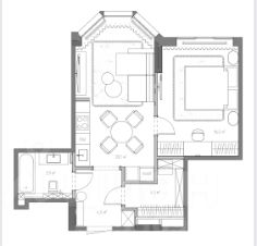 Планировочное решение максимально продуманное, каждый метр квартиры функционален: просторная кухня-гостиная с окнами в пол и прекрасными видами, отдельная спальня, функциональная гардеробная, стильный совмещённый санузел.