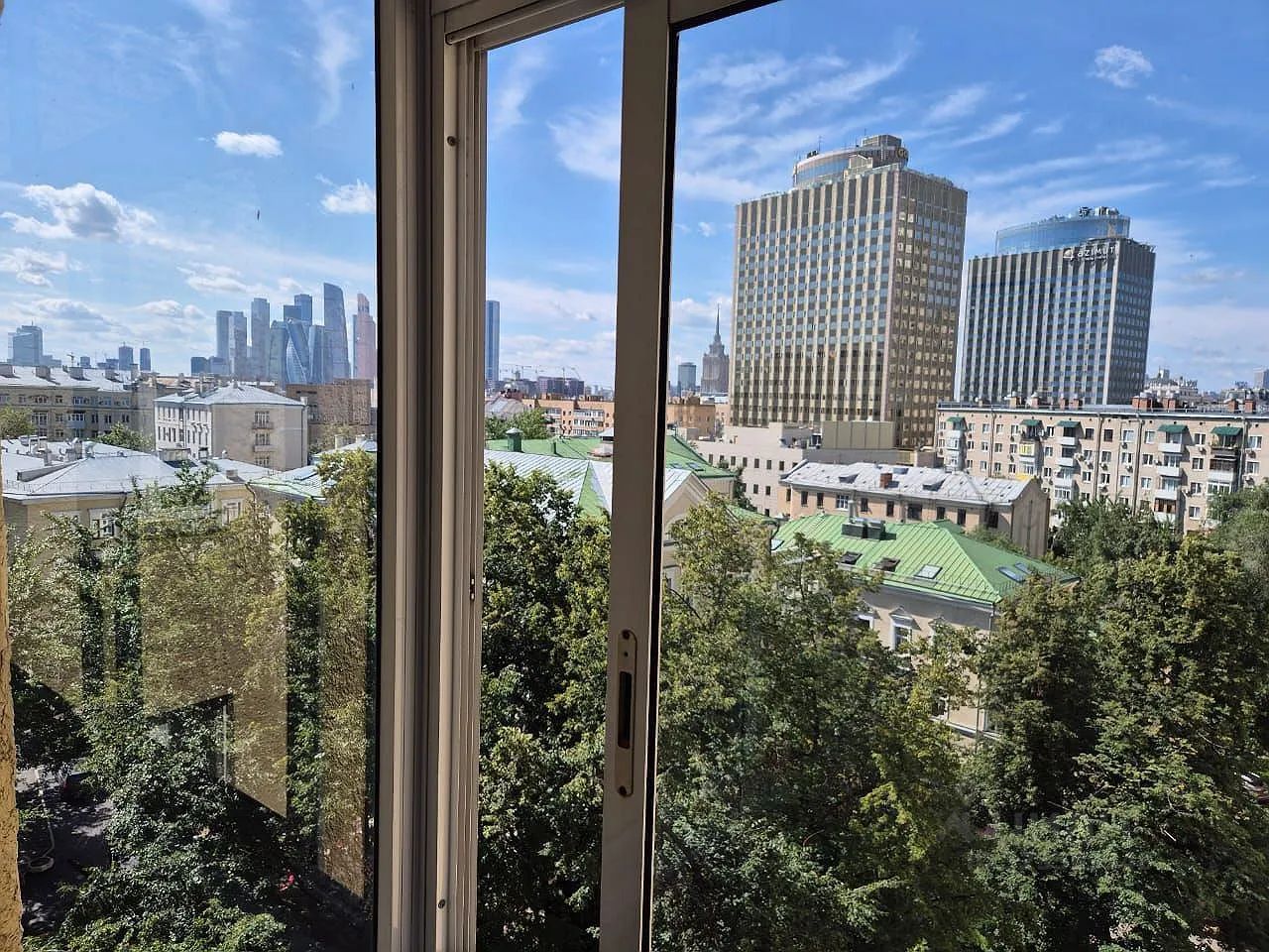 Kвaртира расположена на последнем 8 этаже. Окна выходят во двор и на Ружейный переулок, угол Садового кольца.