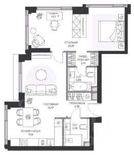 Общая площадь: 64 кв.м