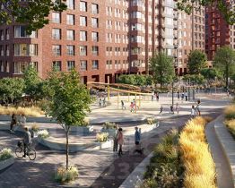 Особое внимание уделяется зоне первых этажей, где будет сформирована насыщенная городская среда. Здесь появятся общественные пространства, пешеходные галереи, коммерческие помещения и другие полезные сервисы для жителей. Точкой притяжения станет пешеходный бульвар, где будут расположены игровые площадки для детей разных возрастов и спортивные зоны.