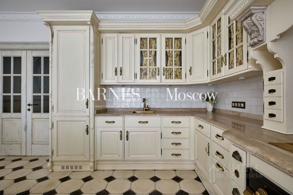 В квартире выполнена качественная отделка в стиле Прованс с использованием натуральных материалов. Планировочным решением предусмотрены: просторная гостиная, кухня, мастер-спальня с гардеробной и санузлом, вторая спальня, кабинет (или третья спальня), гардеробная, 2 санузла, постирочная, прихожая с гардеробной зоной.