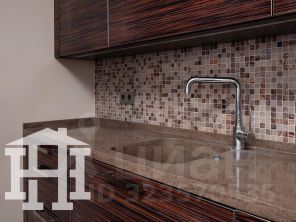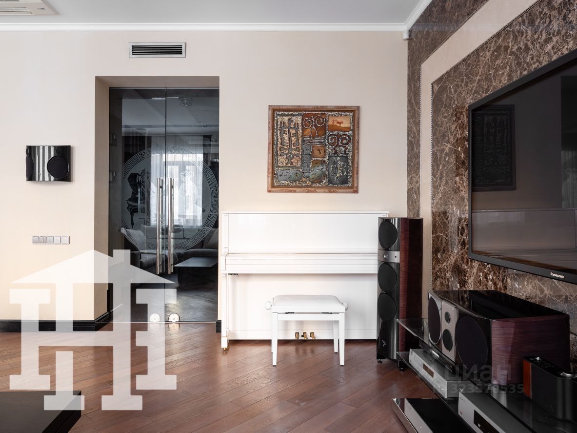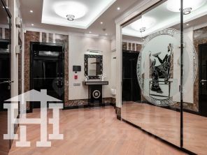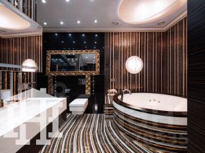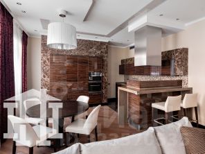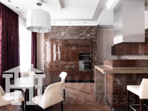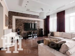 -Стены гостиной отделаны натуральным камнем, который придаёт помещению аристократичность, элегантность и подчёркивает высокий статус квартиры