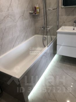 Просторная ванная: ванна и зеркало с подсветками, люксовая сантехника таких брендов, как Villeroy&Boch