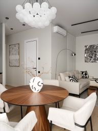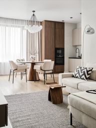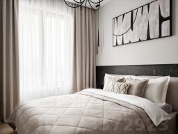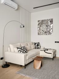 В апартаментах выполнен дизайнерский ремонт в современном стиле. Апартамент укомплектован необходимой мебелью и техникой Bosch, поэтому можно сразу заезжать и жить. Для удобства покупателя 2 кондиционера, стиральная и сушильная машины, тёплые полы, датчики протечки, душевая система-термостат, поддерживающая постоянную температуру воды, на полу - натуральная паркетная доска.