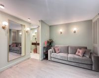 В доме 5 этажей. Окна выходят на две стороны, во двор и переулок. В квартире: входная дверь фирмы Leganza, охранная сигнализация , интернет, звукоизоляция, кондиционер Toshiba, приточная вентиляция (бризер) Ballu, бойлер, сантехника Grohe, Villeroy&Bosh, Omoikiri. На полу дубовая инженерная доска фирмы Coswick. Cтены окрашены краской фирмы Flugger. Столешница на кухне и подоконники из кварцевого агломерата. Корпусная мебель и кухня изготовлена на заказ в отделке матовая эмаль. Стол, стулья и консоль фабрики SKDESIGN. Диван- кровать с ортопедическим матрасом итальянской фабрики DIENNE. Кухня укомплектована бытовой техникой фирмы Maunfeld: холодильник, вытяжка, посудомоечная и стирально-сушильная машины. Текстильное оформление из тканей производства Бельгии.