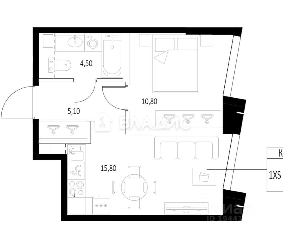 4. Большая кухня 15.8 кв.м, спальня 10.8 кв.м.