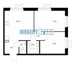 Тип: Евро-3 комнатная (2 отдельные спальни + кухня-гостиная).