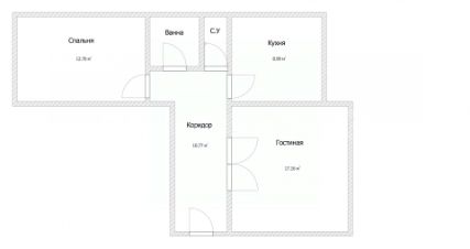 Жилая зона: 32 кв.м (комнаты по 12 и 20 кв.м)