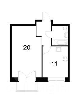 • Общая площадь квартиры 39м2: комната 20м2, кухня 11м2, ванная 3,6м2. Все комнаты изолированы.