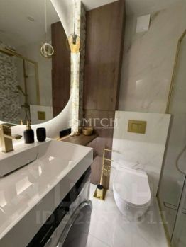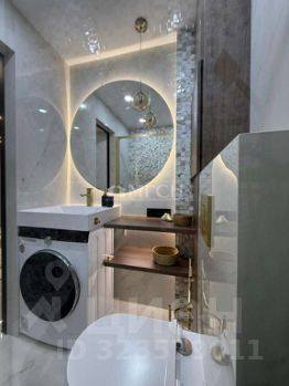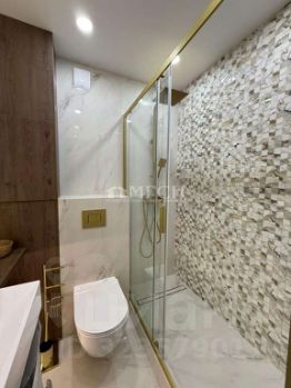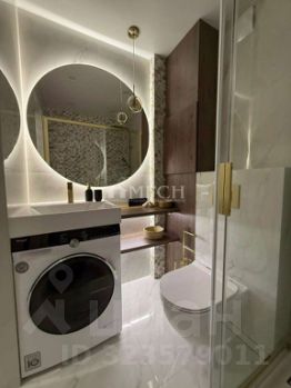 Санузел совмещенный: просторная душевая со сливным треком, стиральная машина, раковина, инсталяция ( унитаз с турбосливом).