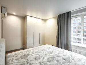 Встроенная мебель и техника ведущих мировых производителей: кухонный гарнитур (индивидуальный заказ), встроенный шкаф-купе в прихожей (индивид.заказ), мягкая мебель производитель "Moon", изготовленная на заказ. В квартире установлены кондиционеры во всех комнатах. Есть гардеробная комната с постирочной зоной.