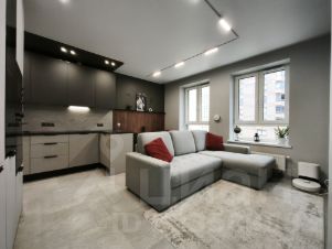 Зона кухни-гостиной "зонирована" удобным мягким диваном, и пространство можно легко менять по вашему вкусу.
