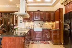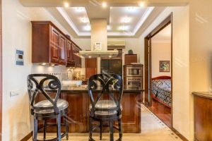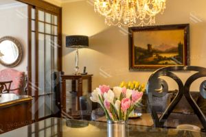 Вся мебель изготовлена из массива высококачественных пород дерева, с антикварным зеркалом 19 века, добавляющим нотку истории в современный интерьер.