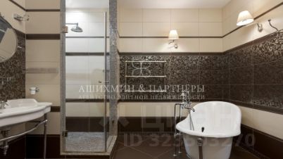 В квартире выполнена высококачественная отделка в стиле современной классики. Дорогая мебель и аксессуары (кухня Varenna Poliform, плитка Sicis, сантехника Volevatch, бытовая техника Miele и Gagenau), модульный паркет Версаль (дуб, Франция), система кондиционирования Daikin, много мест для хранения.