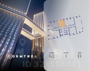 Продаётся 1-комнатная квартира от застройщика: общая площадь 44.40 м², жилая 16.70 м², кухня 20.20 м², 13-й этаж, жилой квартал "Событие-6", корпус 2 (секция 1) Срок сдачи: 1 квартал 2029 года.