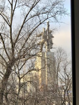 Благодаря 30 сваям первый этаж приподнят на уровень третьего, поэтому даже с нижних этажей открывается отличный вид на ВДНХ и памятник монументального искусства Рабочий и колхозница