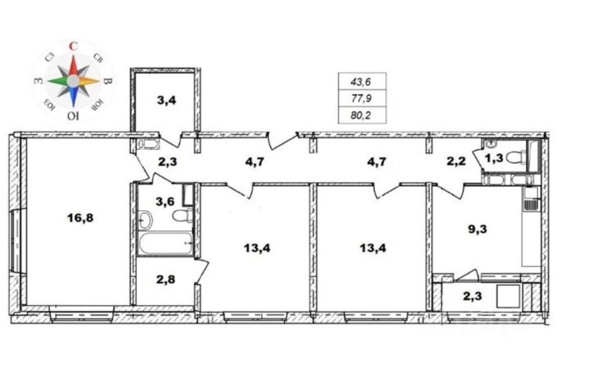 Продается просторная 4-комнатная квартира в современном доме 2021 года постройки. Общая площадь квартиры составляет 80 кв. м, жилая — 66 кв. м, а кухня — 9,5 кв. Квартира расположена на 9-м этаже 16-этажного дома. Высота потолков — 2.7 метра, что добавляет ощущение простора. Из окон открывается вид на улицу, а в распоряжении нового владельца будет один балкон для утреннего кофе на свежем воздухе.