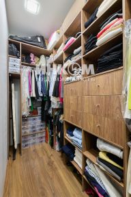 Есть отдельная гардеробная. Тёплые полы. Многоуровневое освещение. Кондиционер.