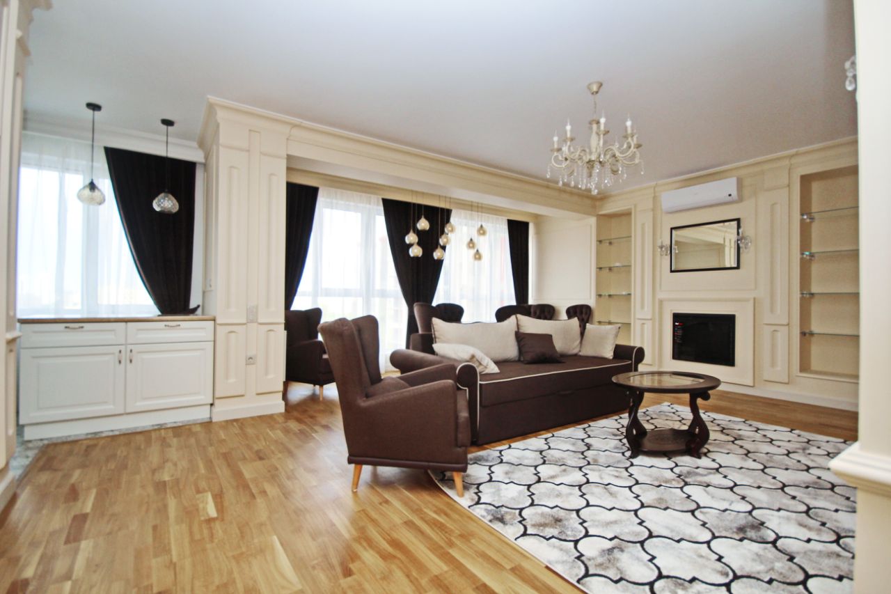 Удобная планировка: студийного плана гостиная, две изолированные спальные комнаты. Кухня выделена в отдельную зону и выходит на светлую и просторную остекленную лоджию.