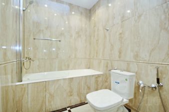 В подъезде сидит консьерж. Лифты: грузовой, со спуском в подземный паркинг, два пассажирских. Пандус. Парковка на территории двора.