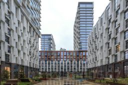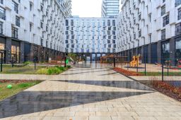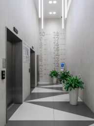 Дом монолитный, секция высотой всего 8 этажей, спроектирован британским архитектурным бюро. Территория ЖК Событие 1 огорожена, двор без машин, предусмотрено круглосуточное видеонаблюдение, консьерж. Обеспеченность парковочными местами на квартиры в доме прекрасная и составляет 0,7.