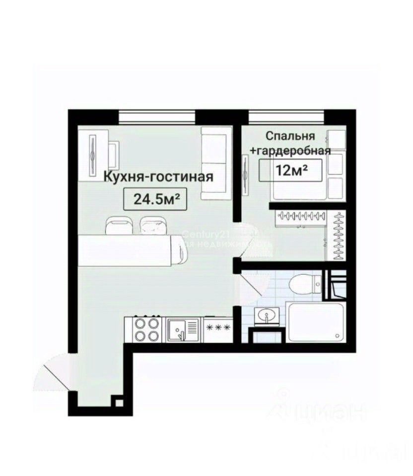 Арт. 124614000 ЕВРОДВУШКА 44м2 С ОТДЕЛКОЙ И МЕБЕЛЬЮ, ГОТОВА К ПРОЖИВАНИЮ!!!