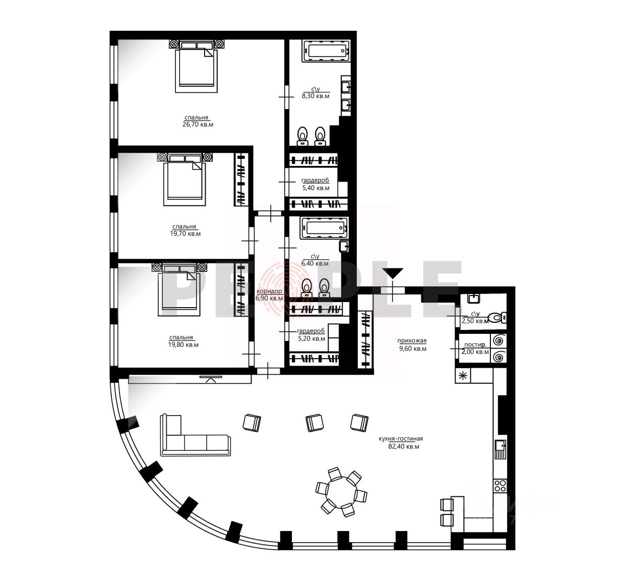 Для семей, ценящих комфорт — три спальни, простор и приватность