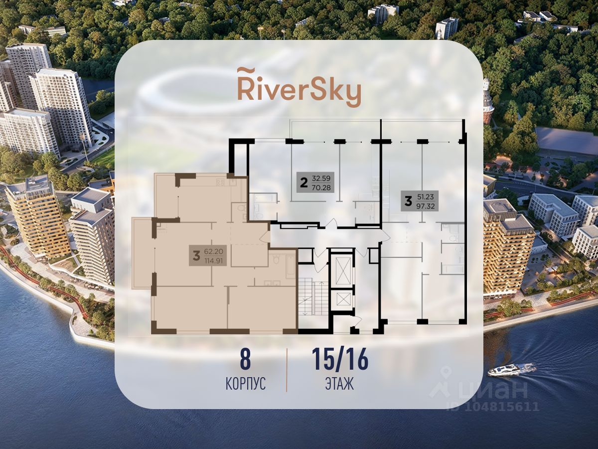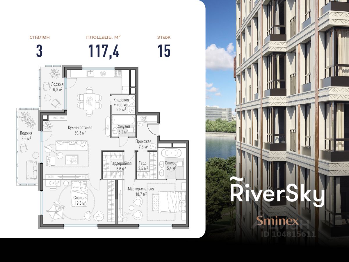Прямая продажа от застройщика. В жилом квартале, расположенном в Даниловском районе Москвы, продаётся 3-комнатная квартира площадью 117.40 кв.м без отделки. Квартира расположена на 15 этаже 16-этажного дома, корпус 8, в жилом квартале бизнес-класса RiverSky, который является частью жилого квартала FORIVER.