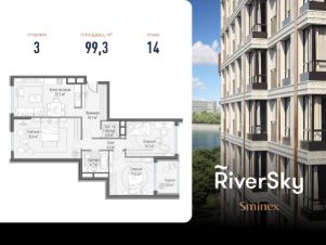 Прямая продажа от застройщика. В жилом квартале, расположенном в Даниловском районе Москвы, продаётся 3-комнатная квартира площадью 99.30 кв.м без отделки. Квартира расположена на 14 этаже 14-этажного дома, корпус 8, в жилом квартале бизнес-класса RiverSky, который является частью жилого квартала FORIVER.