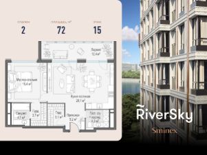 Прямая продажа от застройщика. В жилом квартале, расположенном в Даниловском районе Москвы, продаётся 2-комнатная квартира площадью 72.00 кв.м без отделки. Квартира расположена на 15 этаже 16-этажного дома, корпус 8, в жилом квартале бизнес-класса RiverSky, который является частью жилого квартала FORIVER.