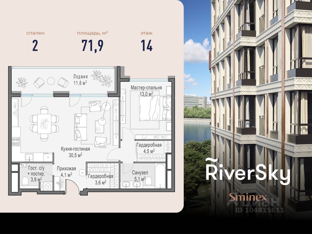 Прямая продажа от застройщика. В жилом квартале, расположенном в Даниловском районе Москвы, продаётся 2-комнатная квартира площадью 71.90 кв.м без отделки. Квартира расположена на 14 этаже 14-этажного дома, корпус 8, в жилом квартале бизнес-класса RiverSky, который является частью жилого квартала FORIVER.
