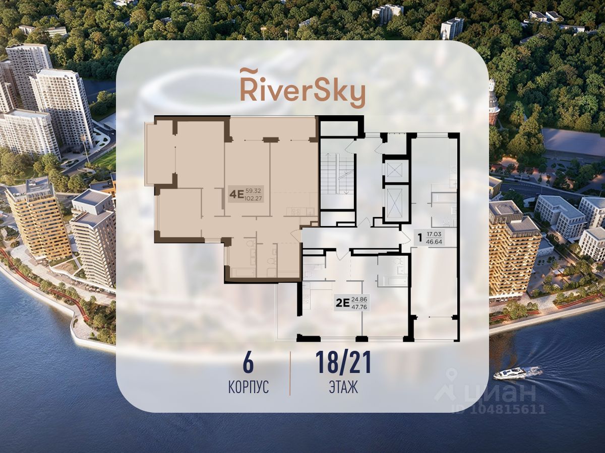 Прямая продажа от застройщика. В жилом квартале, расположенном в Даниловском районе Москвы, продаётся 4-комнатная квартира площадью 101.40 кв.м без отделки. Квартира расположена на 18 этаже 21-этажного дома, корпус 6, в жилом квартале бизнес-класса RiverSky, который является частью жилого квартала FORIVER.