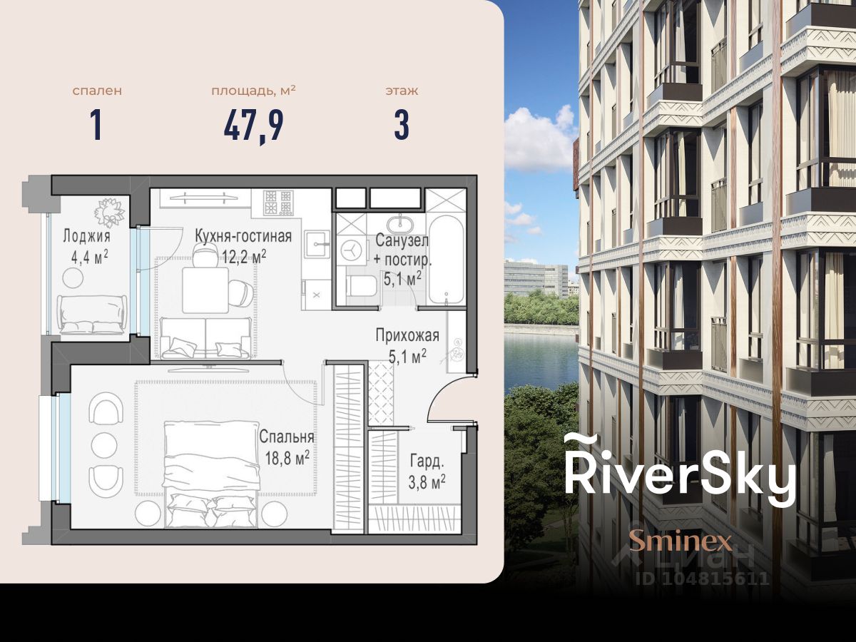 Прямая продажа от застройщика. В жилом квартале, расположенном в Даниловском районе Москвы, продаётся 1-комнатная квартира площадью 47.90 кв.м без отделки. Квартира расположена на 3 этаже 27-этажного дома, корпус 3, в жилом квартале бизнес-класса RiverSky, который является частью жилого квартала FORIVER.