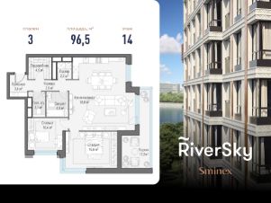 Прямая продажа от застройщика. В жилом квартале, расположенном в Даниловском районе Москвы, продаётся 3-комнатная квартира площадью 96.50 кв.м без отделки. Квартира расположена на 14 этаже 26-этажного дома, корпус 7, в жилом квартале бизнес-класса RiverSky, который является частью жилого квартала FORIVER.