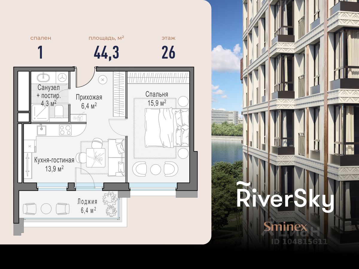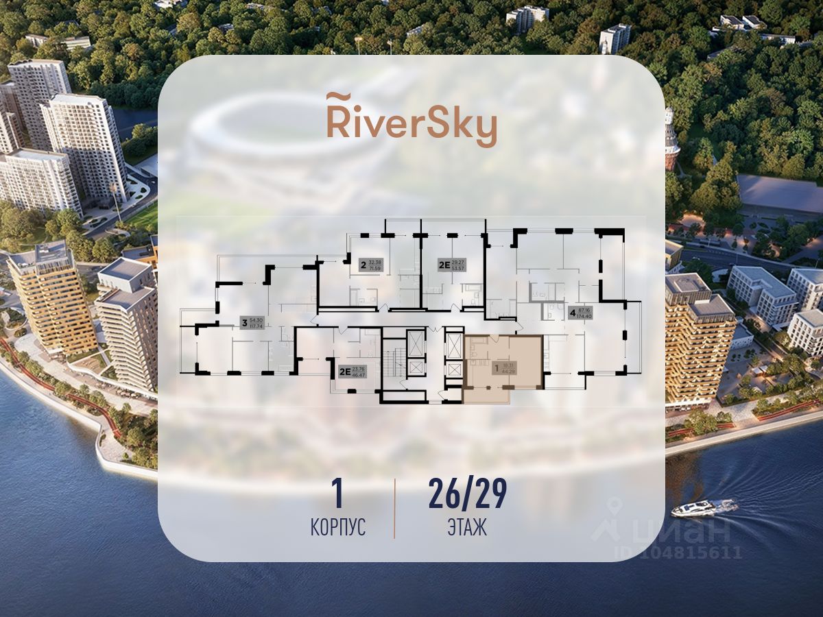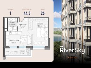 Прямая продажа от застройщика. В жилом квартале, расположенном в Даниловском районе Москвы, продаётся 1-комнатная квартира площадью 44.30 кв.м без отделки. Квартира расположена на 26 этаже 29-этажного дома, корпус 1, в жилом квартале бизнес-класса RiverSky, который является частью жилого квартала FORIVER.
