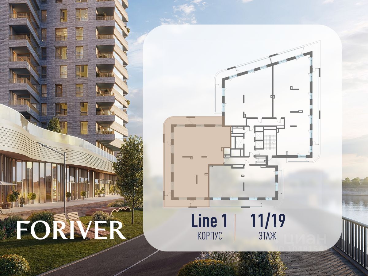 Прямая продажа от застройщика. В жилом квартале, расположенном в Даниловском районе Москвы, продаётся многокомнатная квартира площадью 183.10 кв.м без отделки. Квартира расположена на 11 этаже 19-этажного дома, корпус Line 1, в жилом квартале бизнес-класса Foriver.