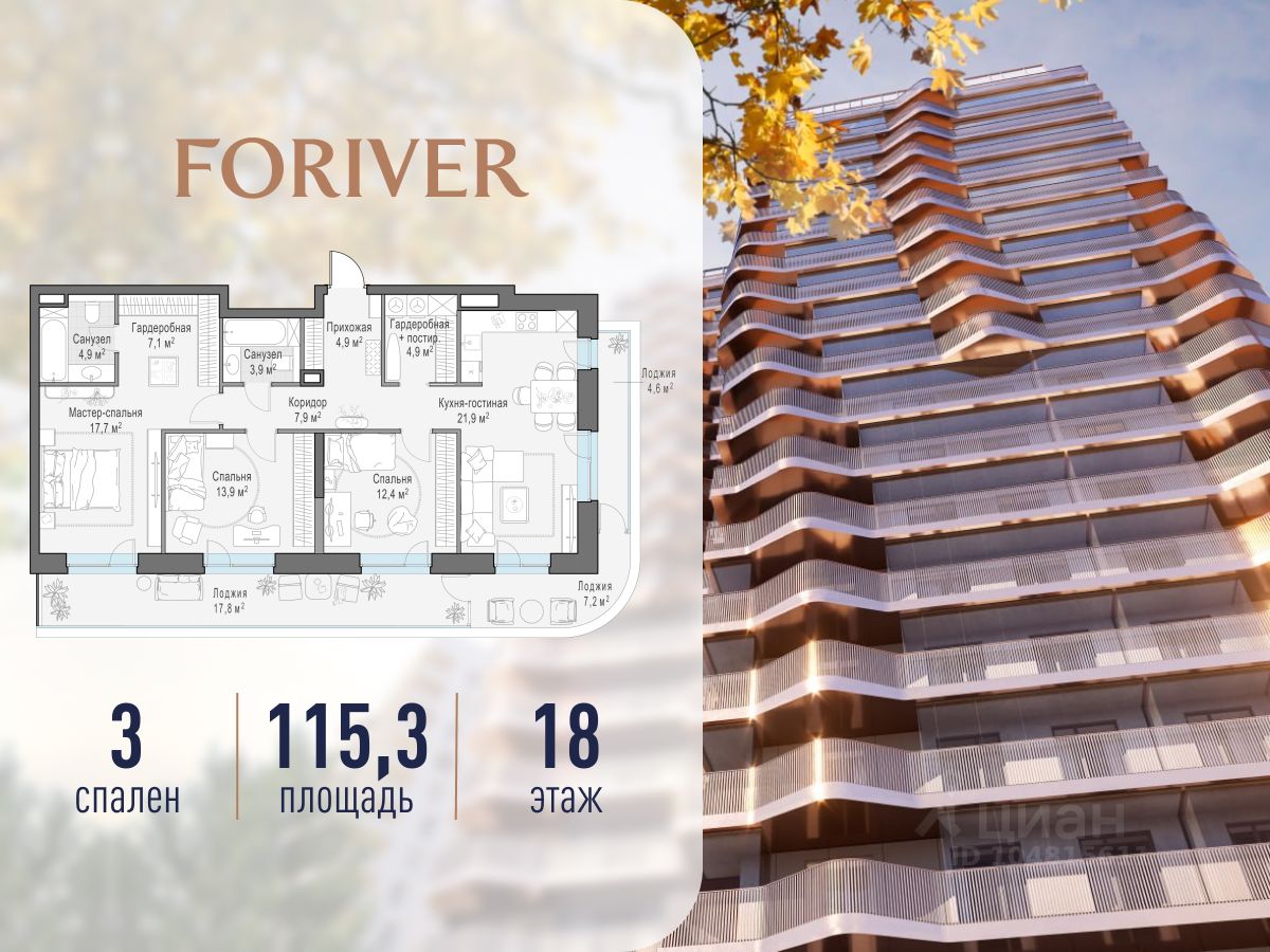 Прямая продажа от застройщика. В жилом квартале, расположенном в Даниловском районе Москвы, продаётся 3-комнатная квартира площадью 115.30 кв.м без отделки. Квартира расположена на 18 этаже 19-этажного дома, корпус Line 1, в жилом квартале бизнес-класса Foriver.